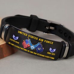 Incorporating an adaptive strap mechanism, the bracelet transcends traditional sizing limitations. It emerges as a profound tribute to veterans, symbolizing dedication, service, and the enduring spirit of patriotism.