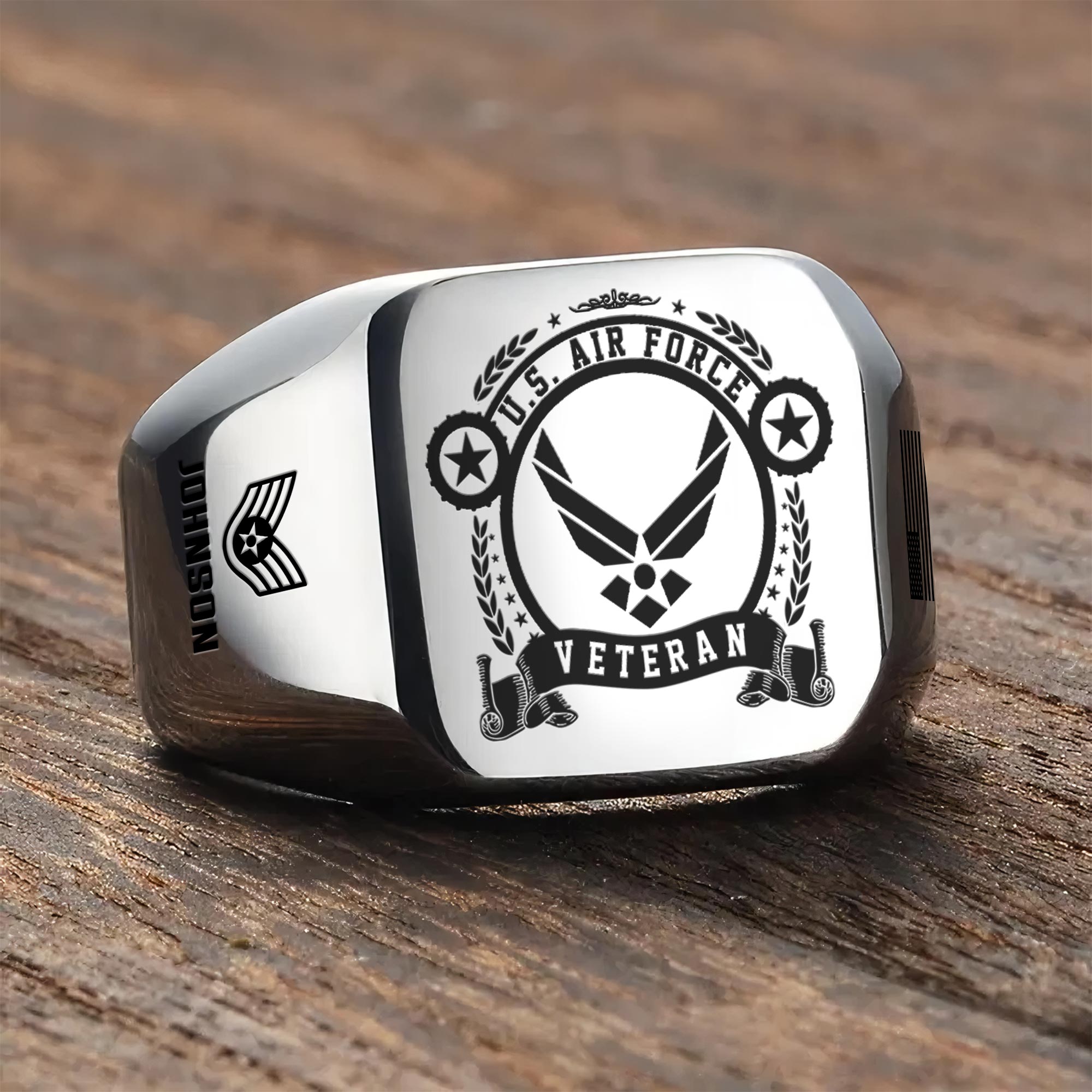 You’re enabled to customize your name, rank, rating, etc. to have them printed on the personalized engraved men’s ring. Create a unique piece that reflects your military journey and personal achievements.