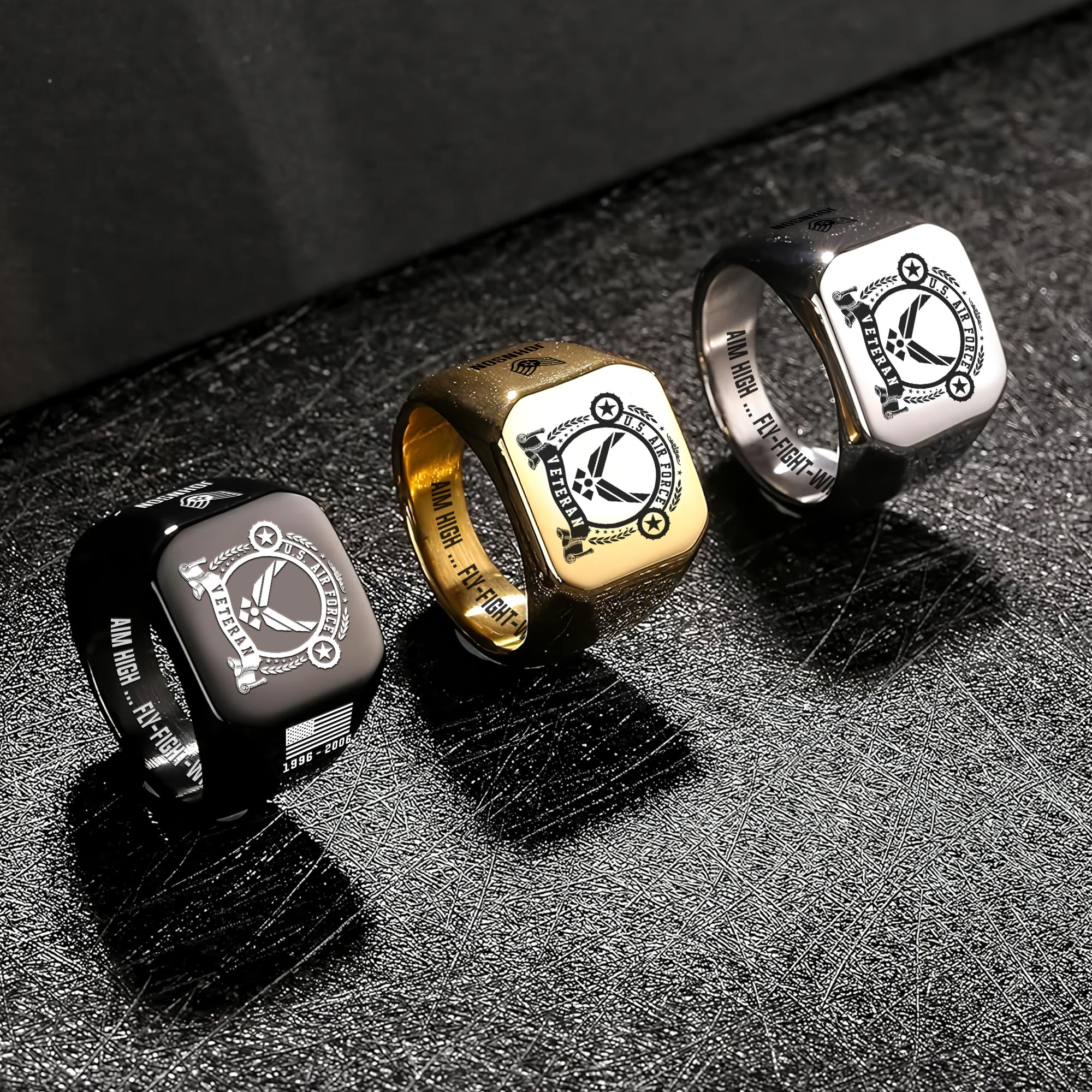 Available in three distinctive color options – Silver, Gold, and Black – allowing for personalized style expression. These rings transcend ordinary accessories, serving as powerful symbols of military heritage and honor.