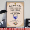 Make your poster a reflection of your personal journey by including custom details like your name, rank, and years of service. This personalized feature not only adds a touch of elegance but also serves as a timeless tribute to your dedicated service to our country.