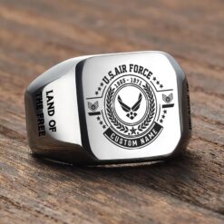 You’re enabled to customize your name, rank, rating, etc. to have them printed on the personalized engraved men’s ring. Transform this piece into a personal memorial of your service and accomplishments.