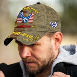 The option to customize with details like rank, name, and years of service adds a personal touch that sets this cap apart. It’s a thoughtful way to make it truly one-of-a-kind.