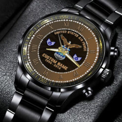 Elevate your Black Stainless Steel Watch with a personal touch by incorporating your custom details like name, rank, and years of service. This unique addition commemorates your military experience in a stylish and meaningful way.
