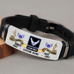 Featuring a dynamic adjustable strap, the bracelet transcends conventional sizing constraints. It emerges as a powerful symbol of veteran appreciation, embodying the profound values of service, honor, and national pride.