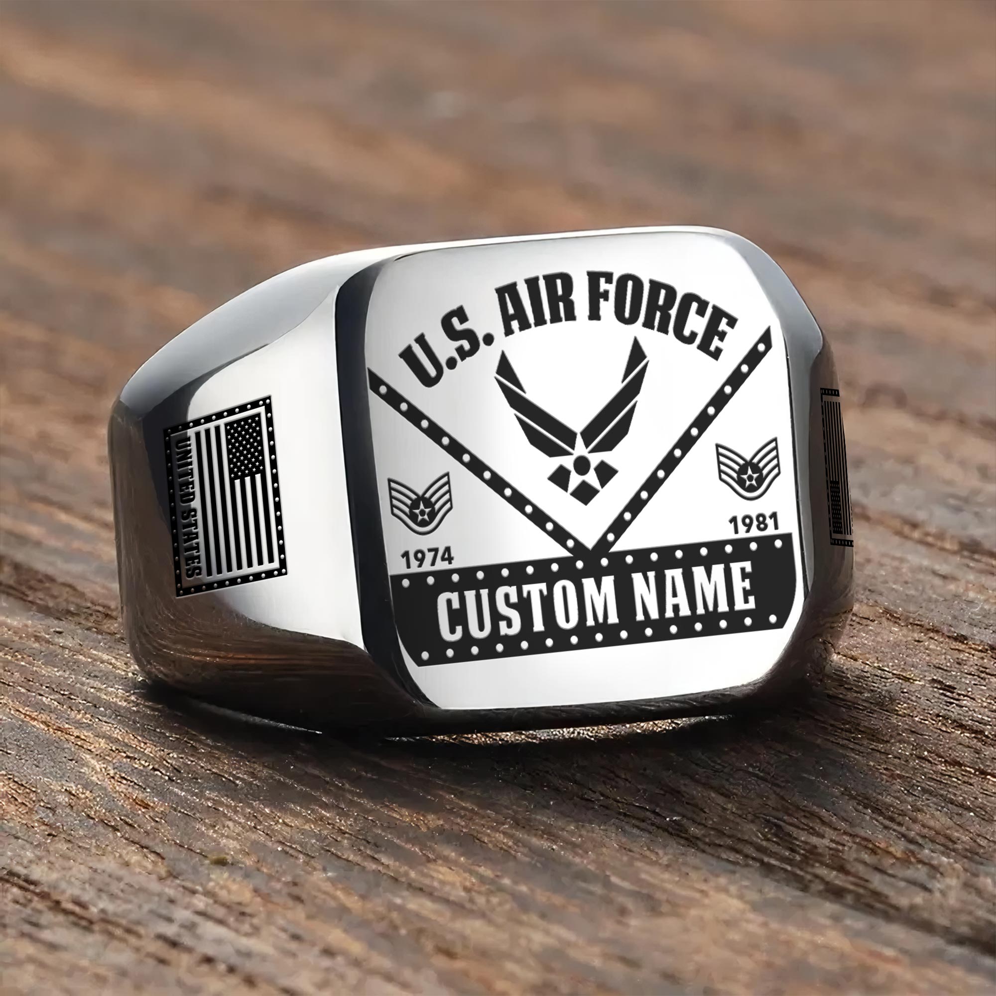 You’re enabled to customize your name, rank, rating, etc. to have them printed on the personalized engraved men’s ring. Make it uniquely yours by incorporating elements that celebrate your military identity and legacy.