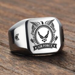 You’re enabled to customize your name, rank, rating, etc. to have them printed on the personalized engraved men’s ring. Make it uniquely yours by incorporating elements that celebrate your military identity and legacy.