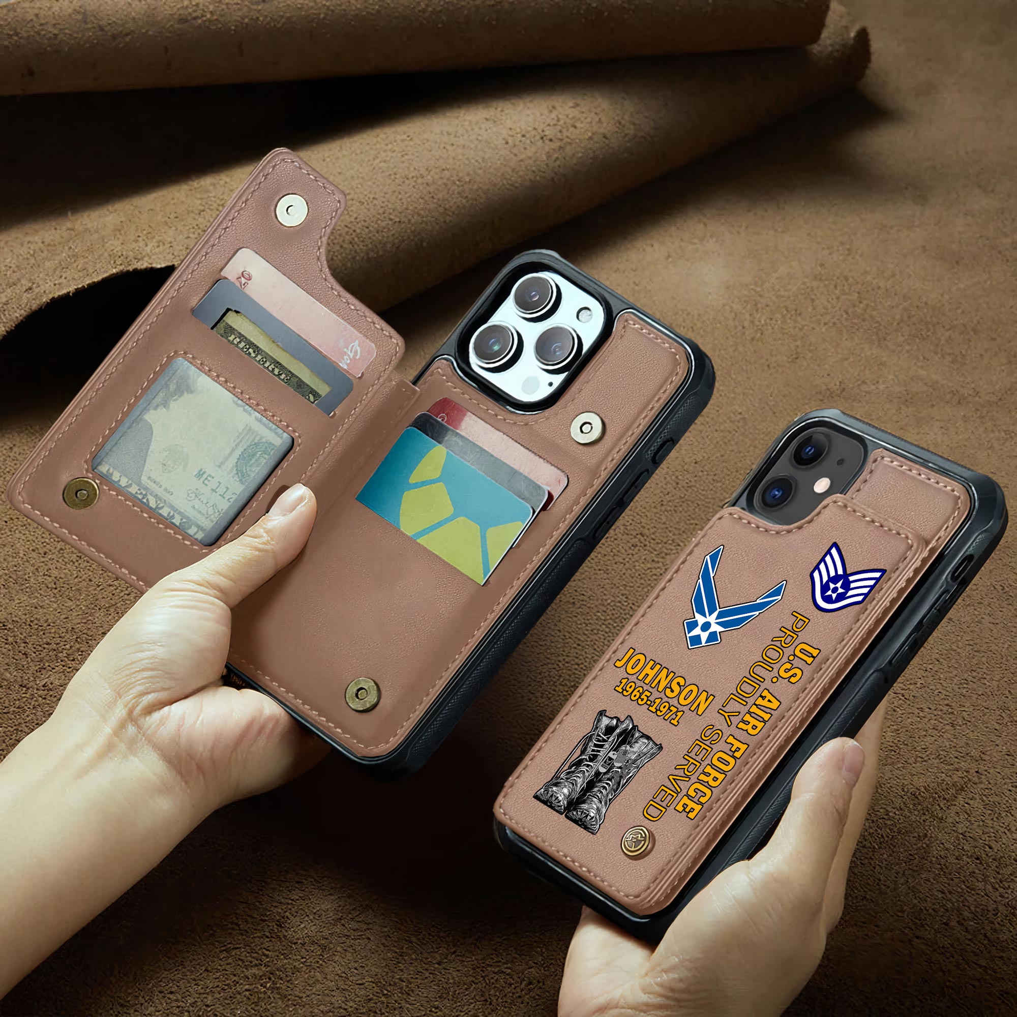 Customize your tribute with our personalized Leather Flip Phone Case. Add your name, rank, years of service, and more to create a unique item that honors your dedication.