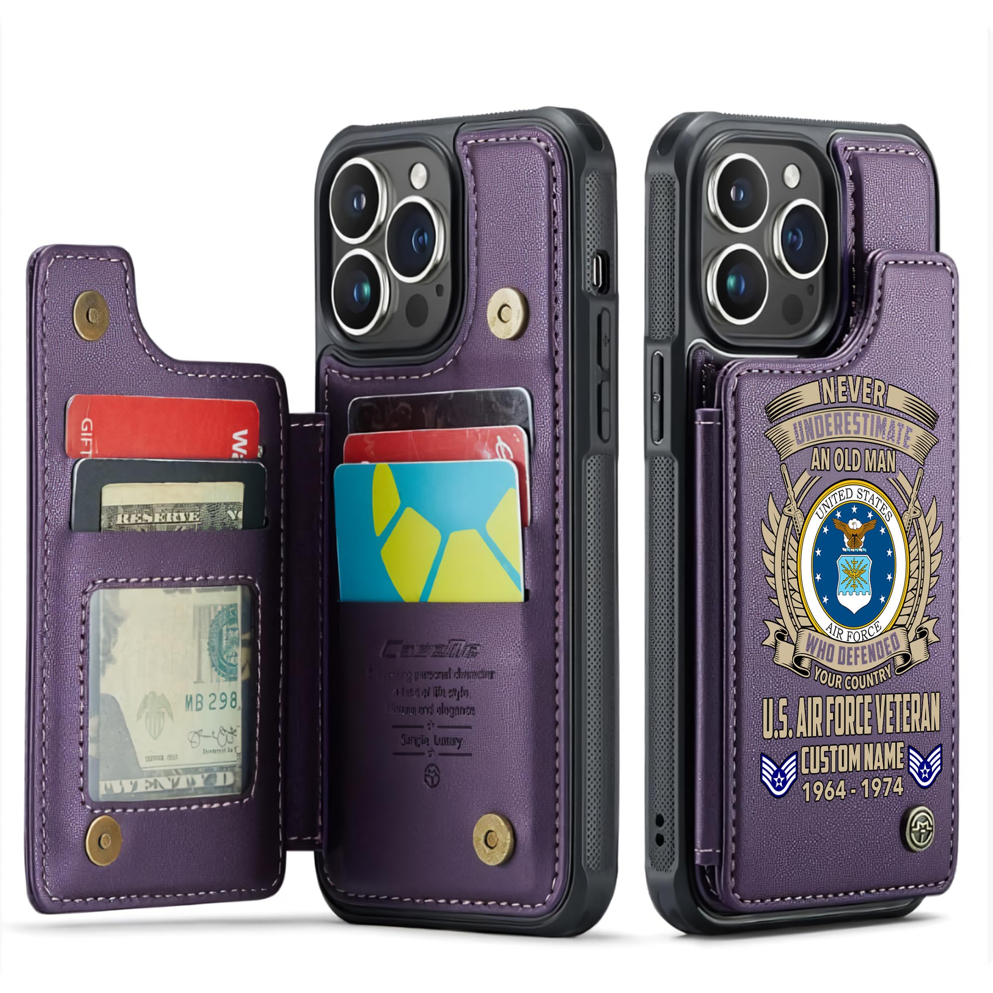 Celebrate military heritage with our superior Veteran Leather Flip Wallet Phone Case, skillfully constructed from resilient PU leather to guarantee enduring protection and elegant presentation.