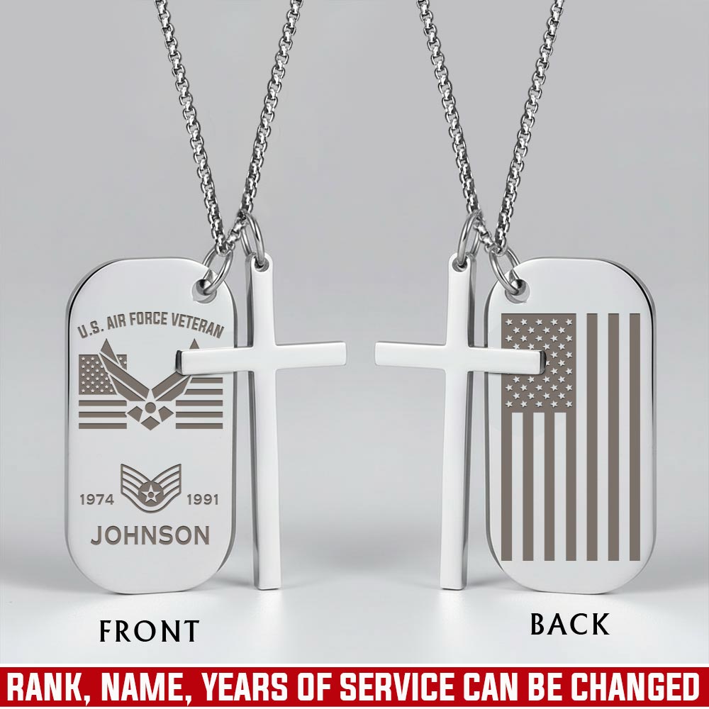 US Air Force, Duty, Honor, Country – Silver Engraved Two Pieces Cross Dog Tag
