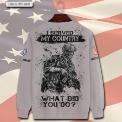Our personalized Veteran T-shirt is a meaningful gift that carries a powerful message of respect and gratitude. It serves as a token of appreciation for the sacrifices made by our veterans, honoring their courage and dedication to protecting our freedoms. Presenting this T-shirt is a heartfelt way to express admiration and support for their service, reminding them that their efforts are deeply valued and remembered.