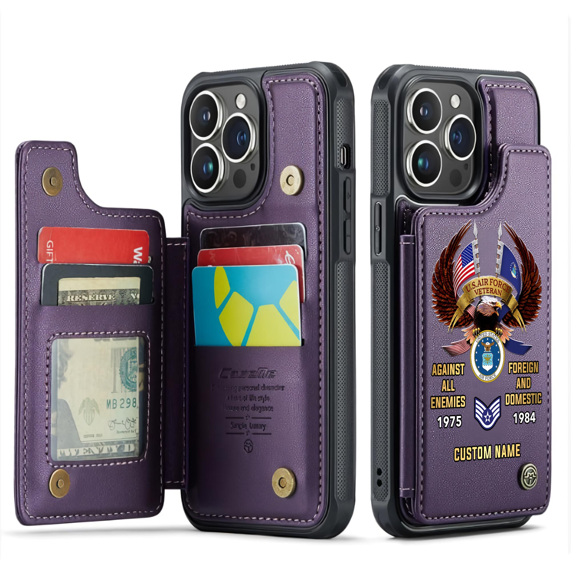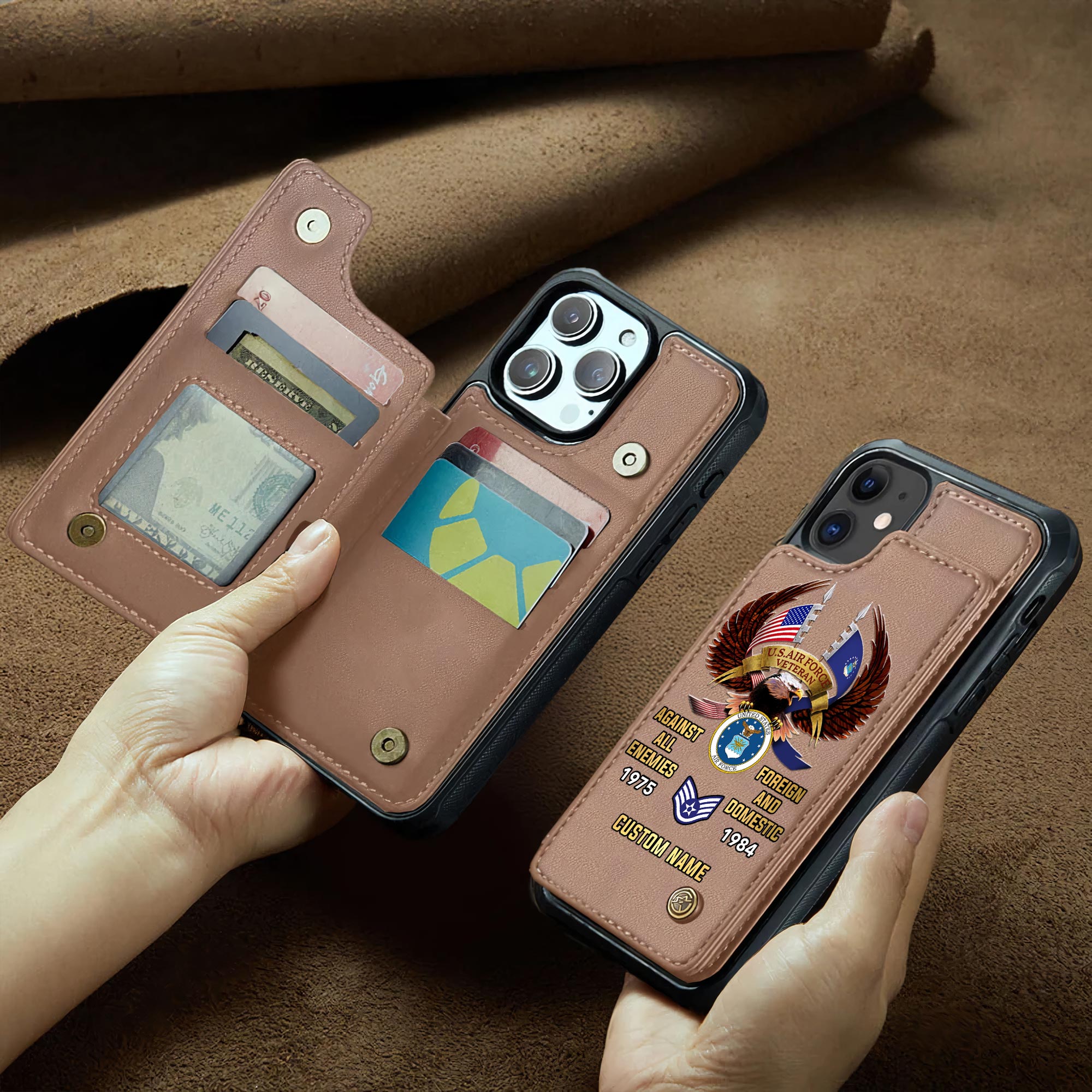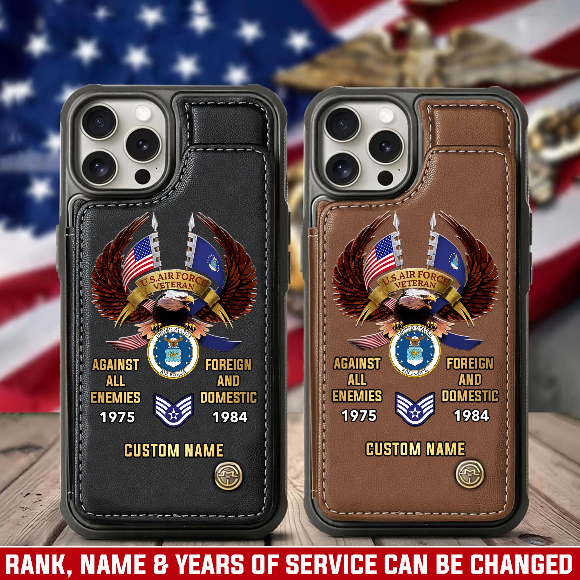 Customize your tribute with our personalized Leather Flip Phone Case. Add your name, rank, years of service, and more to create a unique item that honors your dedication.