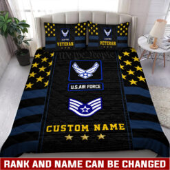 Make your quilt bed set uniquely yours by adding your custom information such as name, rank, and years of service. This personalized detail adds a special touch, celebrating your military journey with elegance and grace.