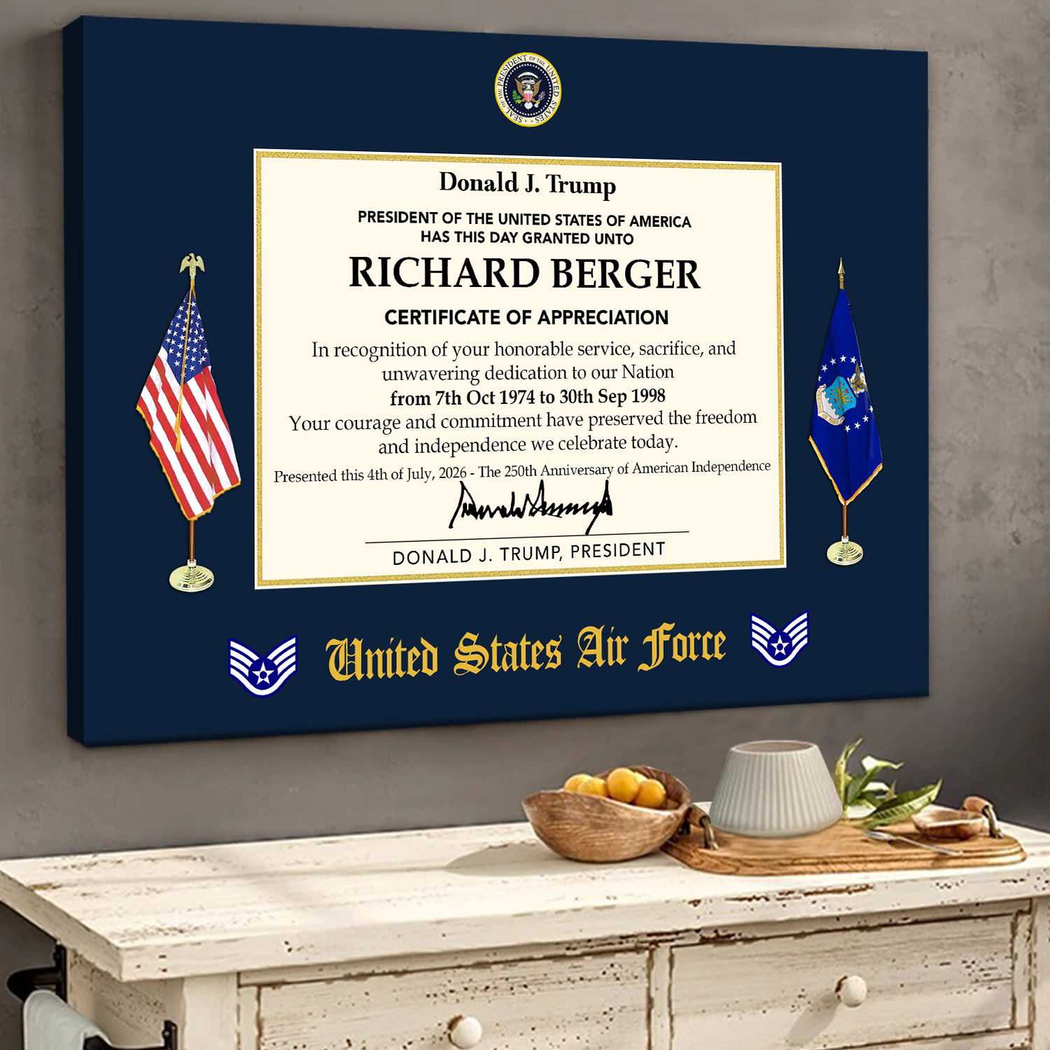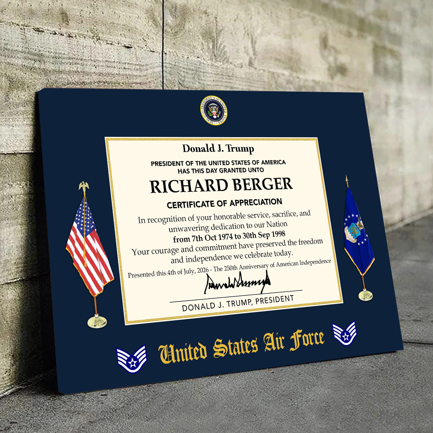 Customize your tribute with our personalized canvas. Add your name, rank, years of service, and more to create a unique item that honors your dedication.
