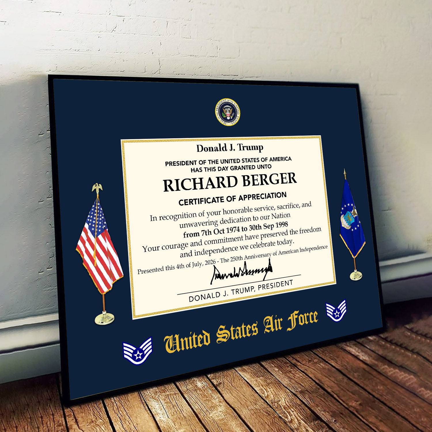 Elevate your poster with a personal touch by incorporating your custom details like name, rank, and years of service. This unique addition commemorates your military experience in a stylish and meaningful way.