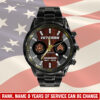 Make your Black Stainless Steel Watch uniquely yours by adding your custom information such as name, rank, and years of service. This personalized detail adds a special touch, celebrating your military journey with elegance and grace.