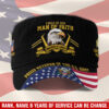 Adding personal touches like rank, name, and years of service to this cap elevates its significance, turning it into a meaningful symbol of honor and recognition.