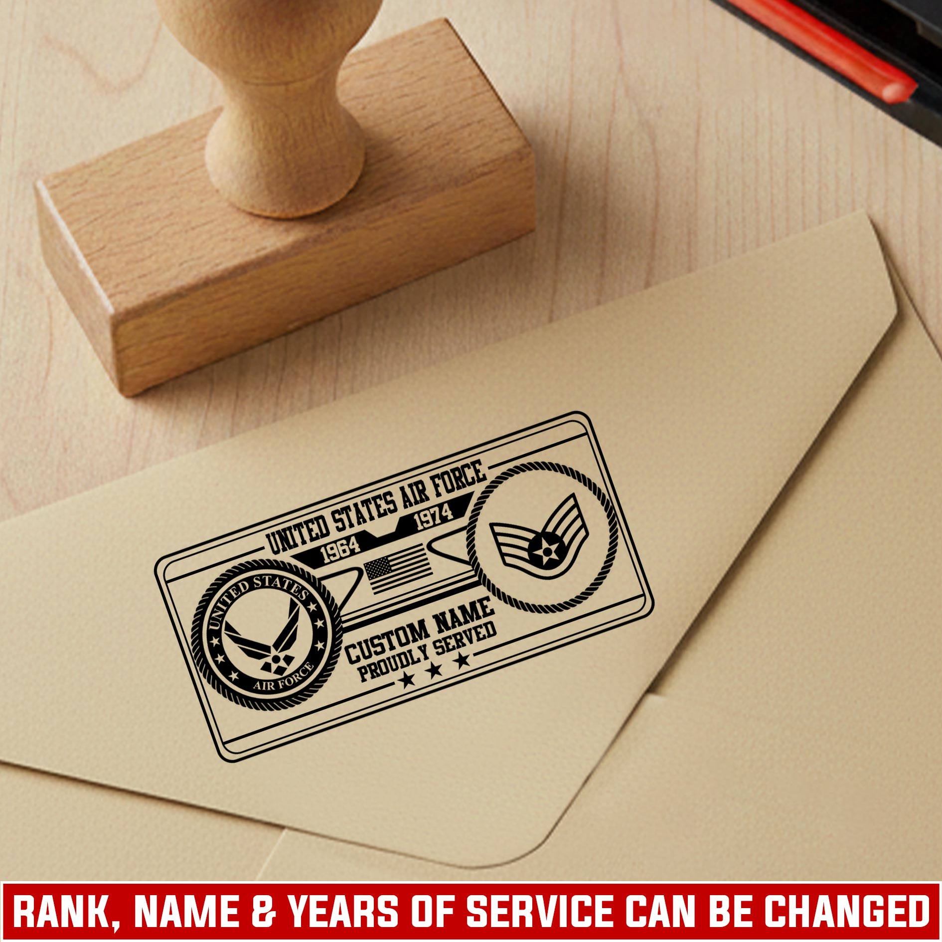 US Air Force, E 6 Air Force Technical Sergeant – Personalized Military Wooden Stamp
