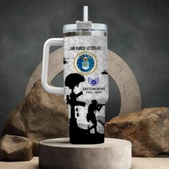 Honor the veteran in your life with our personalized tumbler options, allowing you to customize with their rank, name, and other personal details for a heartfelt touch.