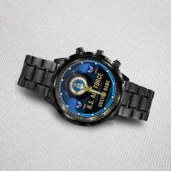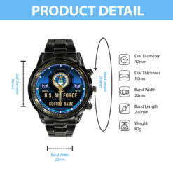 Make your Black Stainless Steel Watch a reflection of your personal journey by including custom details like your name, rank, and years of service. This personalized feature not only adds a touch of elegance but also serves as a timeless tribute to your dedicated service to our country.