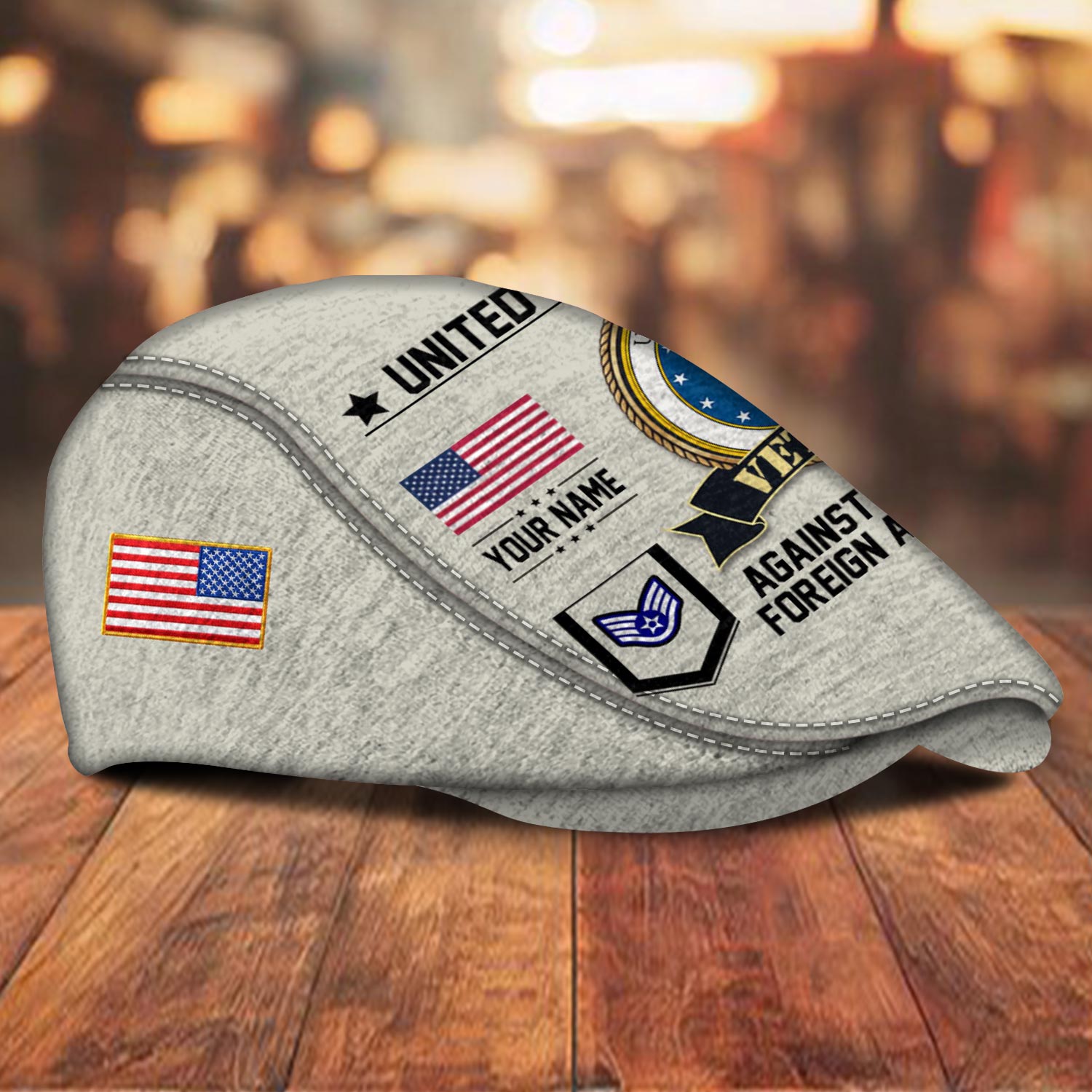 Mark moments of remembrance and celebration with our jeff cap. Custom-deplaqueed with inplaqueia and text, this cap makes a unique, meaningful gift for honoring veterans on Veterans Day, Memorial Day, or any occasion dedicated to recognizing their bravery and sacrifice.