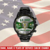 Make your Black Stainless Steel Watch a reflection of your personal journey by including custom details like your name, rank, and years of service. This personalized feature not only adds a touch of elegance but also serves as a timeless tribute to your dedicated service to our country.