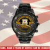 Make your Black Stainless Steel Watch a reflection of your personal journey by including custom details like your name, rank, and years of service. This personalized feature not only adds a touch of elegance but also serves as a timeless tribute to your dedicated service to our country.