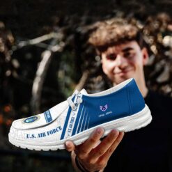 Elevate your Dude Shoes with a personal touch by incorporating your custom details like name, rank, and years of service. This unique addition commemorates your military experience in a stylish and meaningful way.