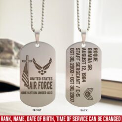 US Air Force, E 7 Air Force Master Sergeant – Engraved Military Dog Tag