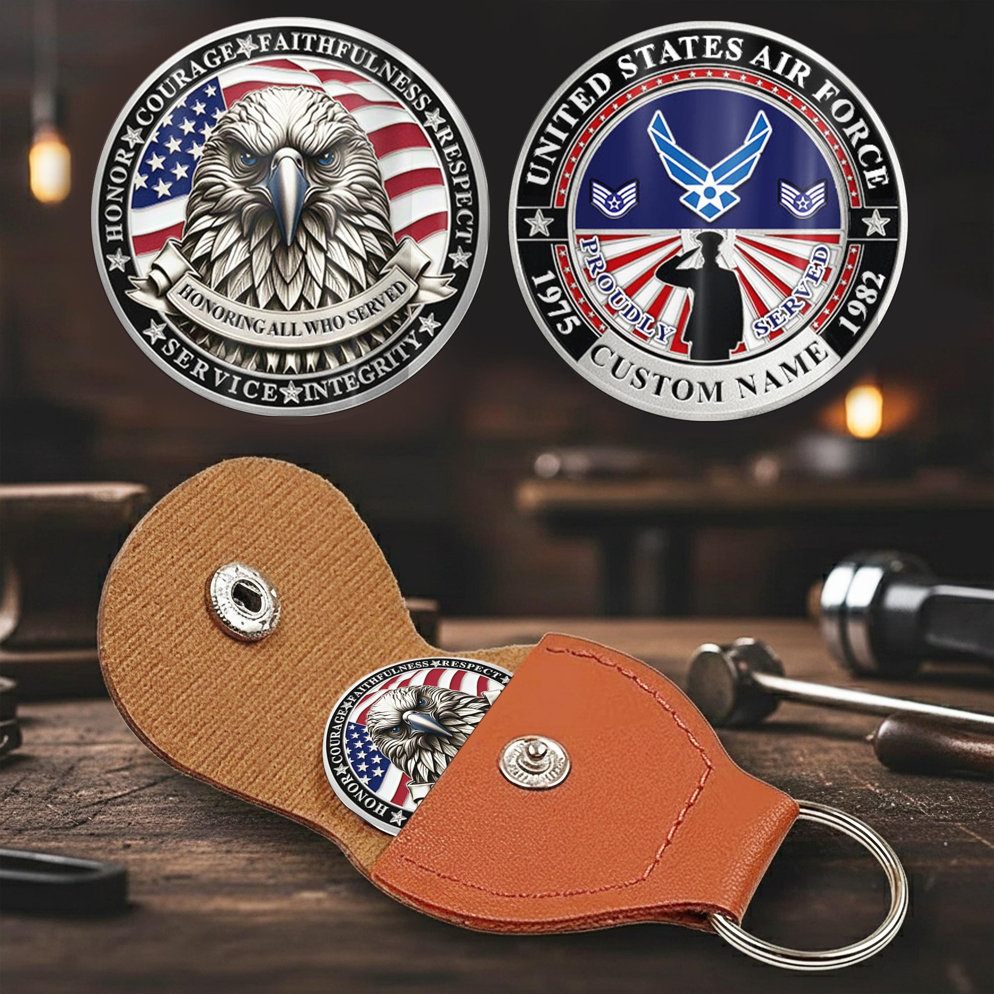 Crafted to honor those who serve, the Military Challenge Coin is a timeless tribute to military excellence. Precision-printed on both sides from premium stainless steel and housed in a protective PU leather case—symbolizing strength, discipline, and legacy.