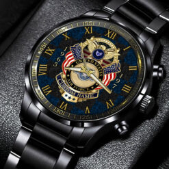 Elevate your Black Stainless Steel Watch with a personal touch by incorporating your custom details like name, rank, and years of service. This unique addition commemorates your military experience in a stylish and meaningful way.