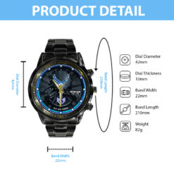 Elevate your Black Stainless Steel Watch with a personal touch by incorporating your custom details like name, rank, and years of service. This unique addition commemorates your military experience in a stylish and meaningful way.