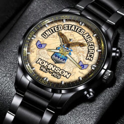 Make your Black Stainless Steel Watch uniquely yours by adding your custom information such as name, rank, and years of service. This personalized detail adds a special touch, celebrating your military journey with elegance and grace.