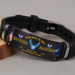 Featuring a dynamic adjustable strap, the bracelet transcends conventional sizing constraints. It emerges as a powerful symbol of veteran appreciation, embodying the profound values of service, honor, and national pride.