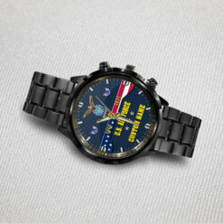 Elevate your Black Stainless Steel Watch with a personal touch by incorporating your custom details like name, rank, and years of service. This unique addition commemorates your military experience in a stylish and meaningful way.