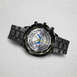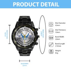 Make your Black Stainless Steel Watch a reflection of your personal journey by including custom details like your name, rank, and years of service. This personalized feature not only adds a touch of elegance but also serves as a timeless tribute to your dedicated service to our country.