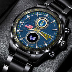 Make your Black Stainless Steel Watch uniquely yours by adding your custom information such as name, rank, and years of service. This personalized detail adds a special touch, celebrating your military journey with elegance and grace.