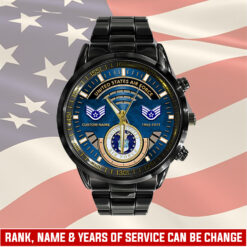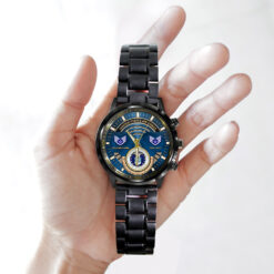 Make your Black Stainless Steel Watch a reflection of your personal journey by including custom details like your name, rank, and years of service. This personalized feature not only adds a touch of elegance but also serves as a timeless tribute to your dedicated service to our country.
