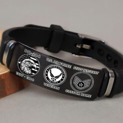 Incorporating an adaptive strap mechanism, the bracelet transcends traditional sizing limitations. It emerges as a profound tribute to veterans, symbolizing dedication, service, and the enduring spirit of patriotism.