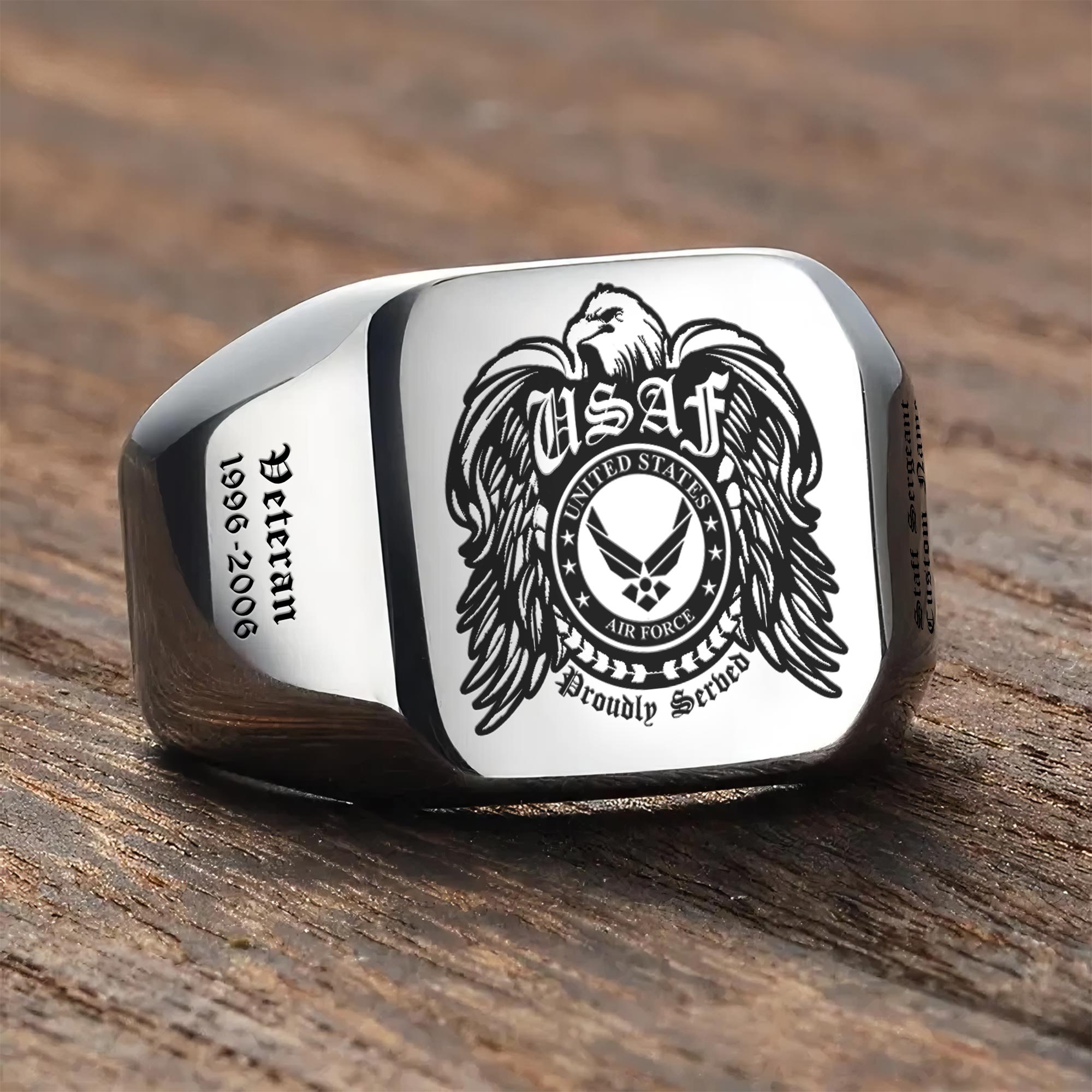 You’re enabled to customize your name, rank, rating, etc. to have them printed on the personalized engraved men’s ring. Personalize this meaningful piece to showcase your military credentials and cherished memories.