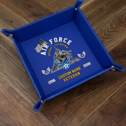 Advanced UV printing ensures your personalized design achieves permanent durability—completely resistant to fading or peeling with striking black engraving that preserves its impact over years of use. The superior vegan leather construction withstands daily wear while offering a luxurious feel and appearance, complemented by a practical snap-corner system that transitions seamlessly between assembled and flat storage configurations. This versatile tray serves veteran households as both a commemorative display piece and an efficient organizer for pocket contents, jewelry, and small electronics.