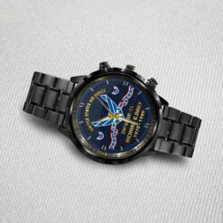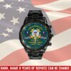 Customize your Black Stainless Steel Watch with your name, rank, and years of service for a truly one-of-a-kind timepiece. This personalized feature allows you to showcase your military journey with pride and distinction.