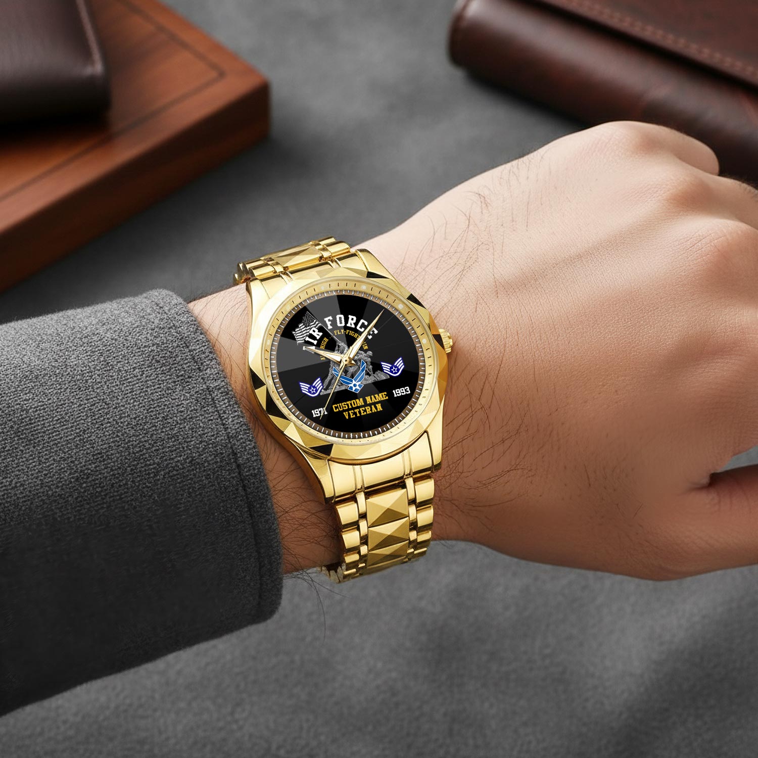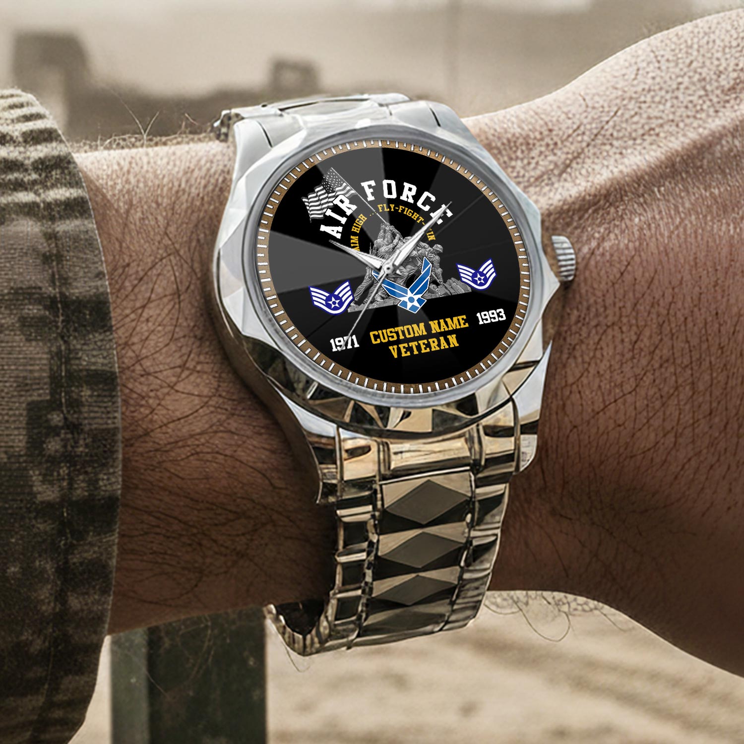 Customize your Diamond-Cut Bezel Watch with your name, rank, and years of service for a truly one-of-a-kind timepiece. This personalized feature allows you to showcase your military journey with pride and distinction.