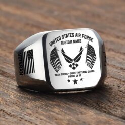 You’re enabled to customize your name, rank, rating, etc. to have them printed on the personalized engraved men’s ring. Make it uniquely yours by incorporating elements that celebrate your military identity and legacy.