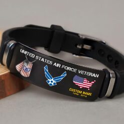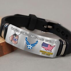 Incorporating an adaptive strap mechanism, the bracelet transcends traditional sizing limitations. It emerges as a profound tribute to veterans, symbolizing dedication, service, and the enduring spirit of patriotism.