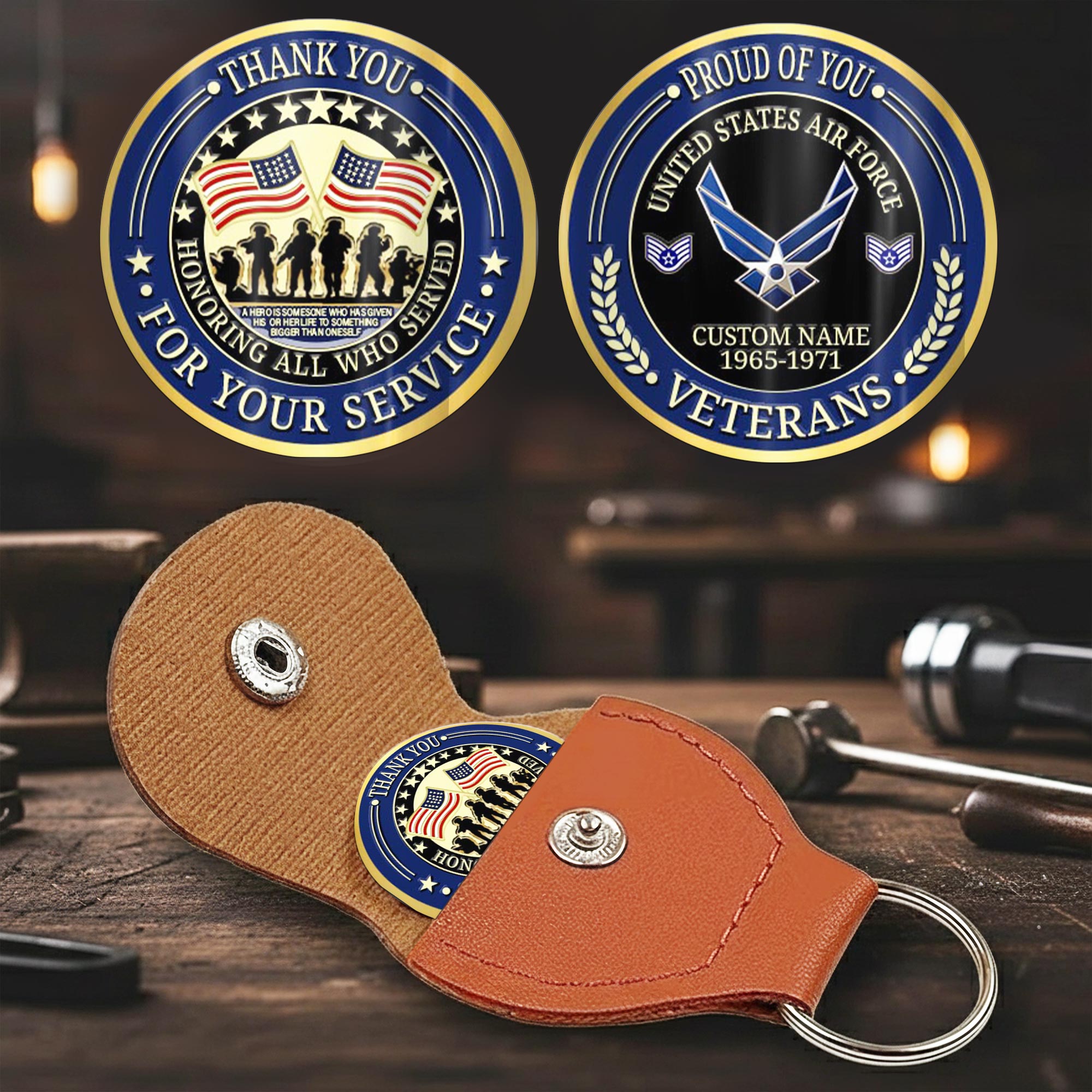 The Military Commemorative Challenge Coin showcases exceptional craftsmanship with detailed printings on both sides of solid stainless steel. Protected in a quality PU leather case with secure snap fastener, this coin honors military heritage and individual achievement.