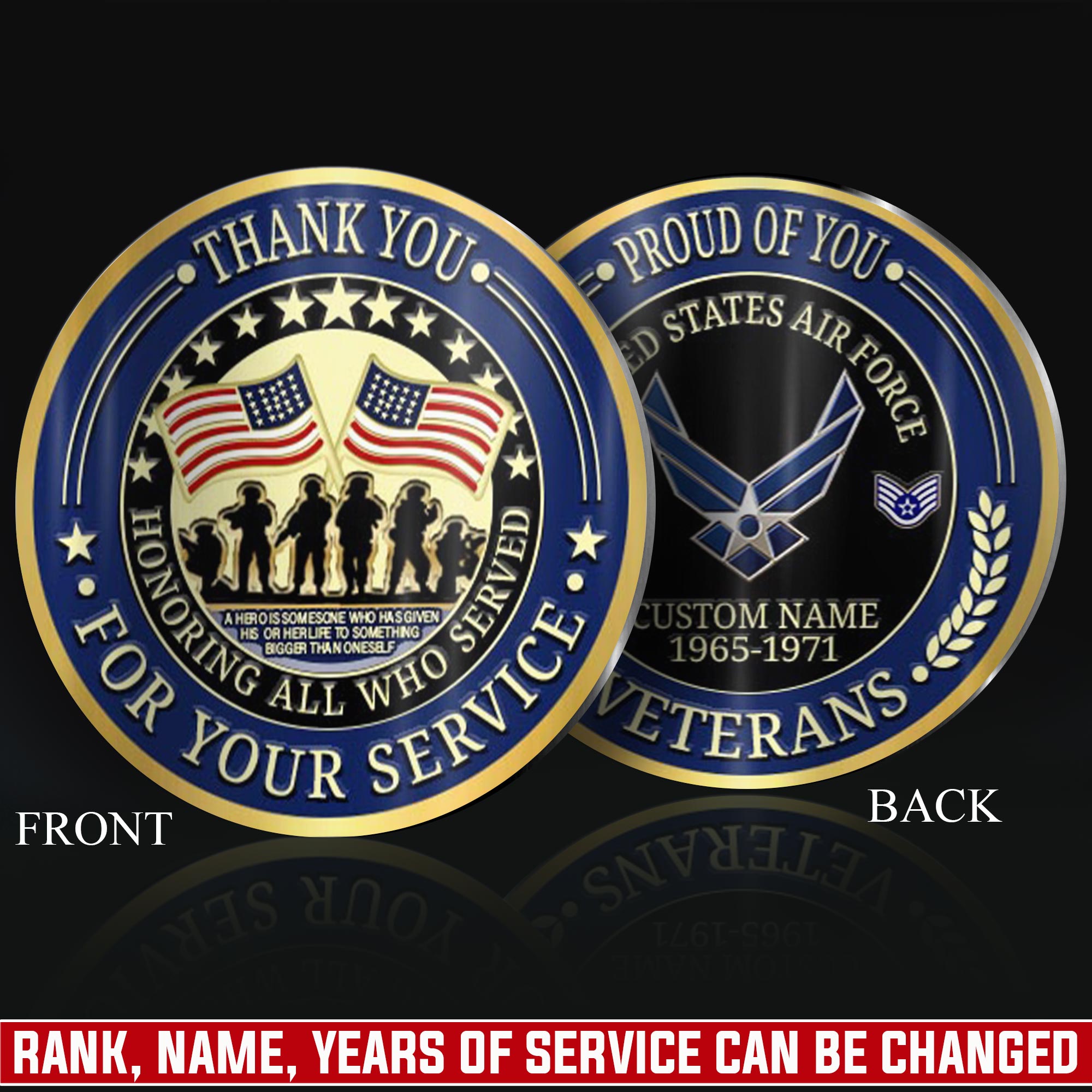 Make It Personal: print both sides with service member name, military rank, branch of service (Army, Navy, Air Force, Marines, Coast Guard), unit designation, or years of service.