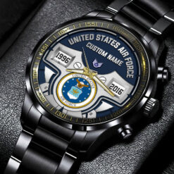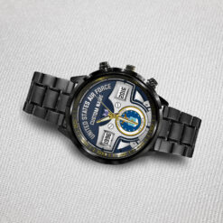 Elevate your Black Stainless Steel Watch with a personal touch by incorporating your custom details like name, rank, and years of service. This unique addition commemorates your military experience in a stylish and meaningful way.