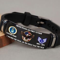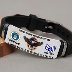 Featuring a dynamic adjustable strap, the bracelet transcends conventional sizing constraints. It emerges as a powerful symbol of veteran appreciation, embodying the profound values of service, honor, and national pride.