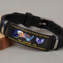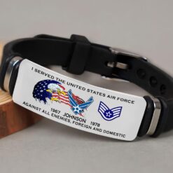 Featuring a dynamic adjustable strap, the bracelet transcends conventional sizing constraints. It emerges as a powerful symbol of veteran appreciation, embodying the profound values of service, honor, and national pride.