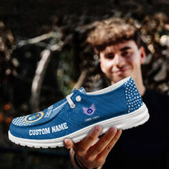 Elevate your Dude Shoes with a personal touch by incorporating your custom details like name, rank, and years of service. This unique addition commemorates your military experience in a stylish and meaningful way.